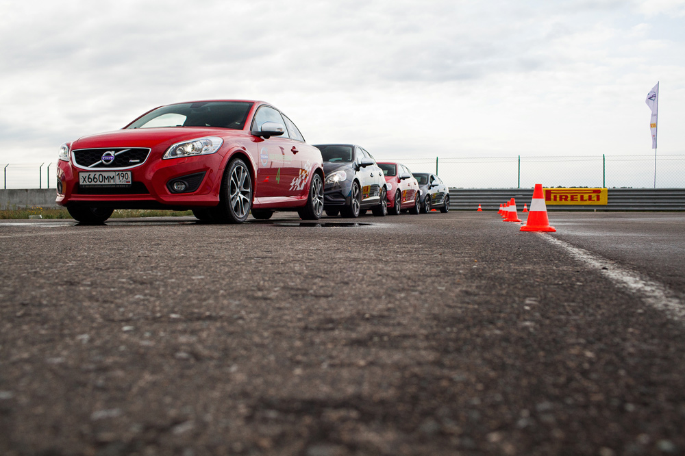 На гоночной трассе все дорожное великолепие «разогнанных», но по большому счету все таких же серийных машинах теряется. Четыре жестких торможения перегревают диски, а трансмиссия отказывается передавать крутящий момент на колеса при повернутом рулевом колесе. В поворотах автомобиль, не оснащенный спортивной подвеской, кренится и вообще всячески сопротивляется подобному с ним обращению. Круг «возвращения в боксы» приходится преодолевать без тормозов, чтобы хоть как-то их остудить. При этом по собственным ощущениям именно S60 из всей представленной гаммы машин оказалась самой быстрой в условиях гоночного трека.