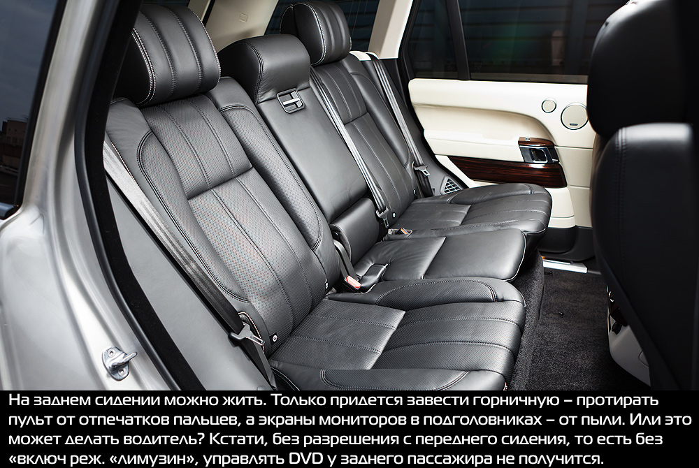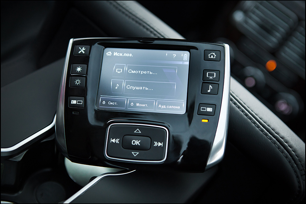 Зато с развлечениями проблем нет. В подголовниках передних сидений – экраны, на которые можно вывести сигнал с ТВ-тюнера или DVD. Чтобы не отвлекать водителя, можно воспользоваться беспроводными наушниками, которые идут в комплекте. За управление системой на задних сиденьях отвечает пульт – мечта ребенка: вылитая портативная игровая приставка или джойстик. В дополнение к раздельному климат-контролю для задних пассажиров – обогрев и охлаждение сидений.