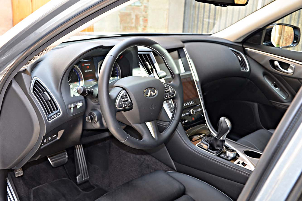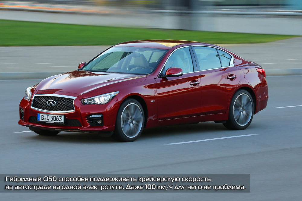 К тому же многие подразумевают под словом «спорт» не столько управляемость, сколько динамику. А с этим у гибридного Q50 все в порядке. Тяги хватает в любом диапазоне скоростей, звук «шестерки» радует слух, а мощности электромотора хватает, чтобы некоторое время поддерживать постоянную скорость с выключенным ДВС. Расстраивает только ступенька по усилию на педали тормоза, но это характерно почти для всех гибридов.