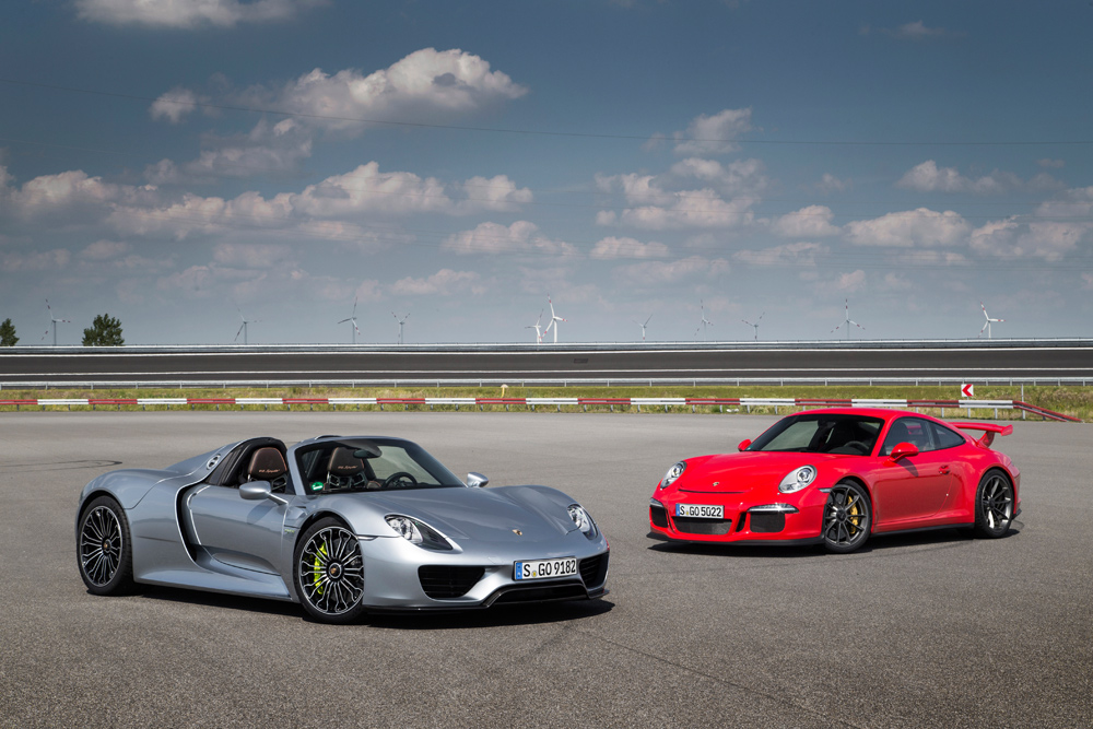 Друг за другом красные, синие и желтые Porsche выстроились на стартовой прямой немецкого испытательного полигона Aldenhoven Testing Center в 70 км от Дюссельдорфа.. Погода плохая, но какая удача — весь день тестировать Porsche от мала до велика. Cayman GTS, 911 Turbo S, 911 Carrera и Targa и, наконец, самая трековая и злая — новый 911 GT3.