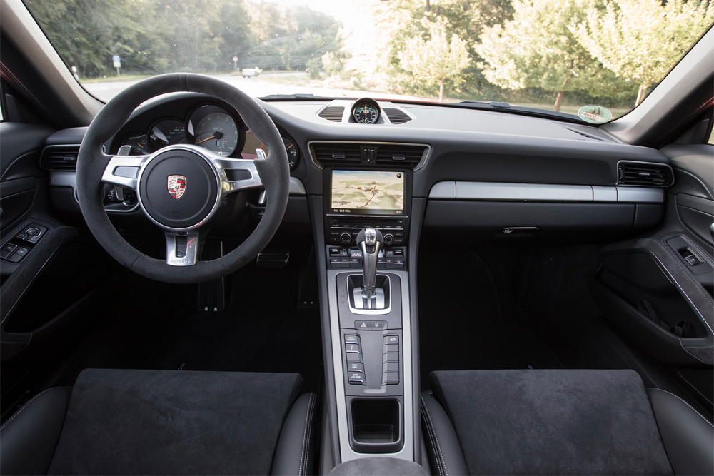 Этому автомобилю нет места на дорогах общего пользования и причин тому несколько. Первая — за спинами на расстоянии полутора метров от пассажиров переднего ряда расположился шестицилиндровый оппозитник мощностью 475 лошадиных сил. Звук от мотора не только устрашает - он просто оглушает. С таким ревом и почти постоянным положением стрелки тахометра в красной зоне уже после 2 км становится не по себе. Вторая причина - подвеска GT3, которая практически соприкасается с дорожным полотном. Каждая соринка, залетающая под автомобиль, по звуку напоминает булыжник, а гравийная дорожка, кажется, еще чуть-чуть, и поменяет местами спинные позвонки. Третье — коробка PDK для GT3 была переработана, и стандартный режим Drive в ней фактически отсутствует, спорткар ездить только в режимах ранних переключений Sport и Sport Plus. Вот они — признаки настоящего спорткара, так что место ему на треке.