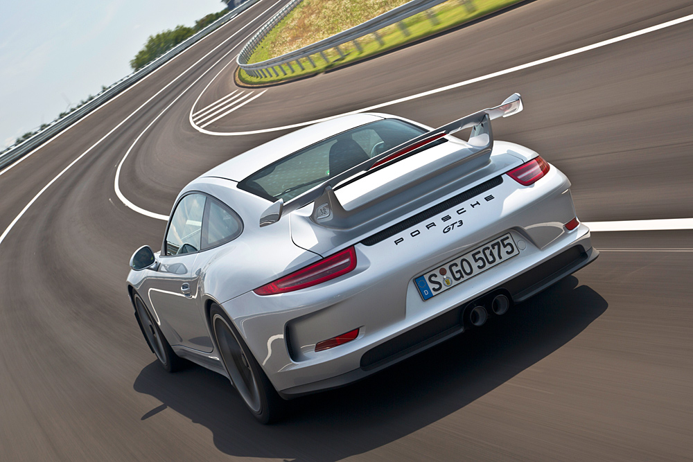 Острый руль GT3 позволяет автомобилю настолько точно выполнять команды, будто невидимая рука сверху все время направляет автомобиль. Во время прохождения «гантели» каждый мокрый участок на трассе грозил сносом, а продавливание газа за пару секунд заставляло корму автомобиля буквально упираться в задний бампер инструкторской Turbo. GT3 так и норовила сорваться и пройти поворот боком. Виной тому еще и полуслики Michelin Pilot Sport Cup, которые в дождь ситуацию лишь усугубляют. В общем, совладать с этой машиной непросто, но если получится, то ощущения она подарит незабываемые - послушание в этом случае зашкаливает. О таком понятии как крены эта машина не знает.