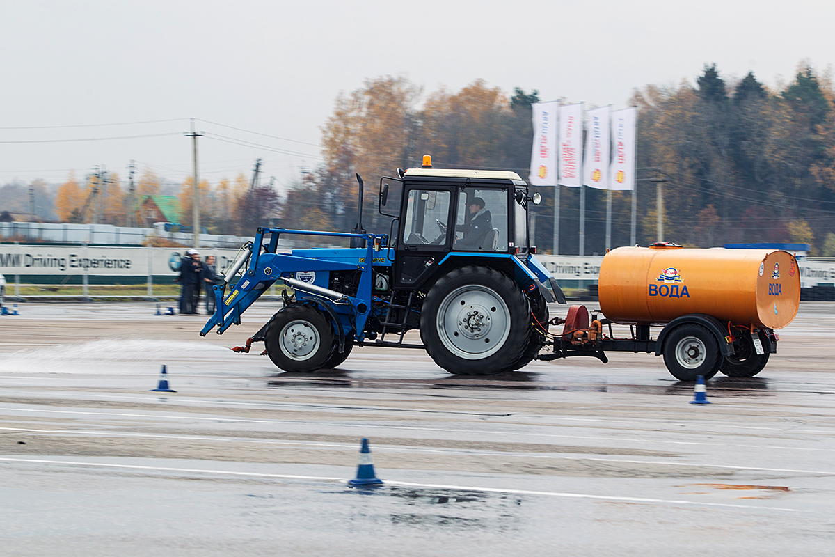 Полигон в Сорочанах занимает ровно 80 тысяч квадратных метров. Этой площадки хватает, чтобы одновременно проводить занятия для двух групп по 8 человек. Инструкторам на полигоне ассистируют трактора, которые обильно поливают асфальт водой. На сухом же покрытии комплект резины не выдержит и половины курса.