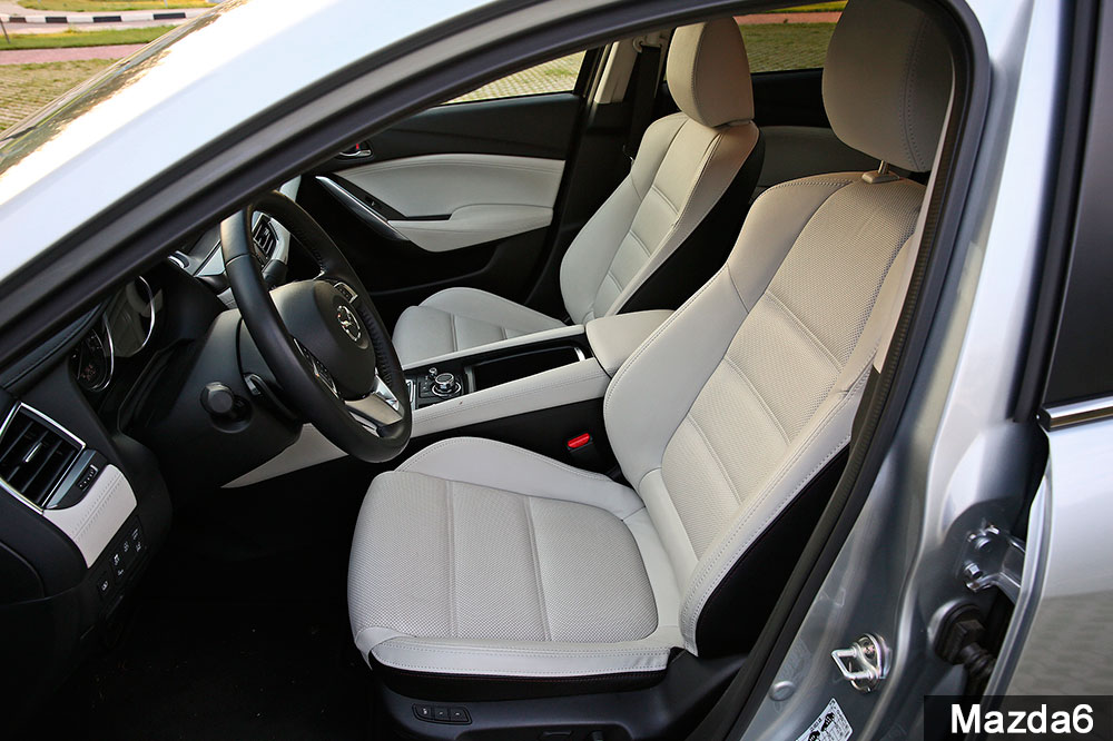 Зато у «шестерки» лучшее место водителя. Во-первых, здесь самые удобные кресла. Достаточно жесткие, с ярко выраженными поддержками, они не дают ерзать по сиденью и не нагружают спину. На втором месте по этому показателю Hyundai i40, на третьем – Mondeo. Самое неудобное место водителя у Camry: оно слишком мягкое и скользкое из-за грубой кожи. Во-вторых, Mazda6 благодаря чуть-чуть повернутой к водителю центральной консоли подчеркивает драйверский акцент.