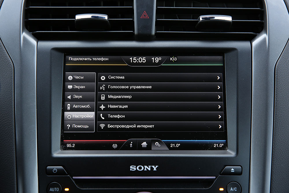 Все они, кроме той, что стоит на «шестерке», оснащены сенсорными дисплеями. При этом управлять проще всего именно «маздовской» системой. С помощью «шайбы» перепрыгивать по пунктам меню можно быстро и меньше отрываться от дороги. С точки зрения интереса лучшая мультимедиа на Mondeo. SYNC 2 с 8-дюймовым экраном – мечта гика. Но, увы, она же самая «тормозная»: зависает чаще остальных, бывает, долго реагирует на нажатия клавиш. Хотя по сравнению с первым SYNC, это небо и земля. Система Hyundai обладает приятной графикой и простейшим (в хорошем смысле) интерфейсом, но не дружит с подключенным через шнурок iPhone: музыка очень часто сбивается и начинает играть с первой песни. У Camry же все на уровне: приличная графика, никаких «тормозов», но и изюминки, позволившей бы выделить ее, нет. Таким штрихом может стать беспроводная зарядка для смартфона, которая есть у Toyota. Кажется, что iPhone, который она не заряжает – не самый популярный среди целевой аудитории этой машины телефон.