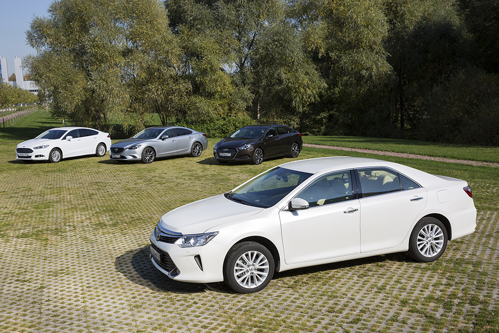Томми не избавит вас от поездки в сервисный центр, виртуозно разобравшись с электрикой, если вы, конечно, не Билли Миллиган. Но есть несомненный плюс – вы психически здоровы. До того момента, как не начнете выбирать новую машину. Даже если вы пришли в автосалон без жены, в голове начинают звучать голоса. Их, конечно, не 24, но каждый борется за то, чтобы встать на пятно света и купить самую красивую, самую практичную или дешевую модель. В этой борьбе в классе непремиальных бизнес-седанов чаще всего побеждает, судя по статистике АЕБ, то альтер эго, которое настаивает на покупке Toyota Camry. Мы проверили шансы других голосов, сравнив японский седан с Ford Mondeo 2,5, Mazda6 2,5 и Hyundai i40 2,0.