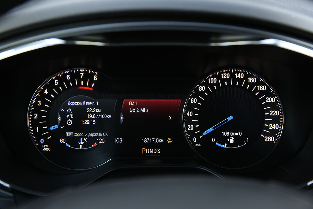 Mondeo же в комплектации Titanium, но без дополнительных опций, которые были на тестовом автомобиле (светодиодные фары, системы помощи при параллельной и перпендикулярной парковке, автоматического торможения, мониторинга мертвых зон, навигации, камеры заднего вида, отделки сидений замшей и кожей, электропривода передних кресел, памяти настроек зеркал и сиденья водителя, подогрева задних кресел), обойдется в 1 374 000 рублей.