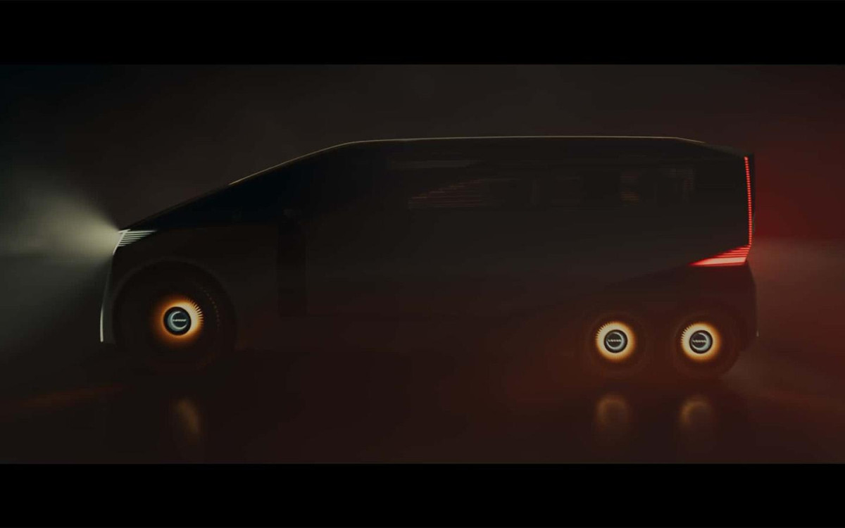 И не просто минивэна, а шестиколесного! Пока это всего лишь концепт, о котором мало что известно. На опубликованных тизерах заметна необычная асимметрия: похоже, с правой стороны нет традиционной передней двери, а вместо нее огромная сдвижная панель с электроприводом, открывающая доступ в просторный салон.