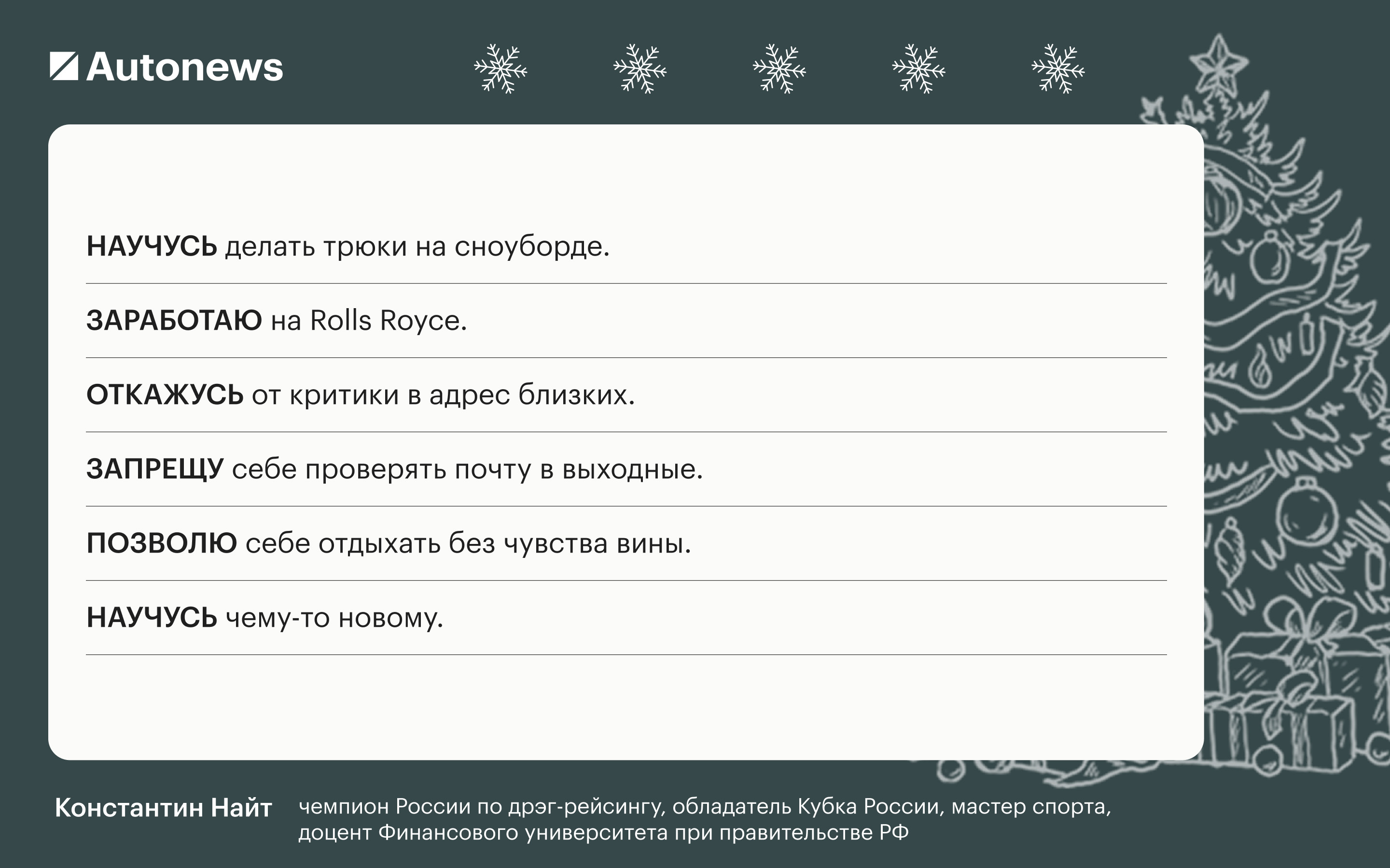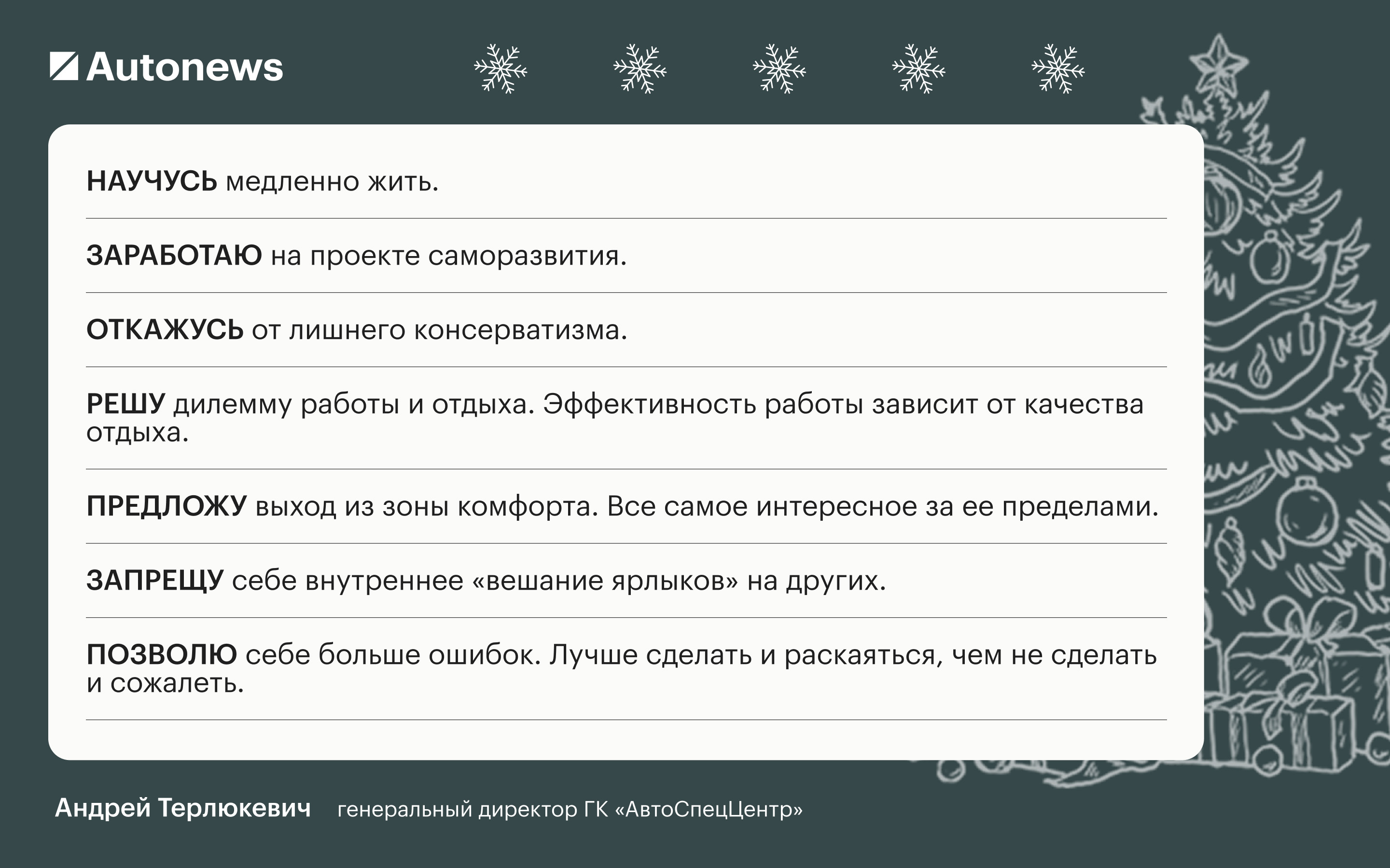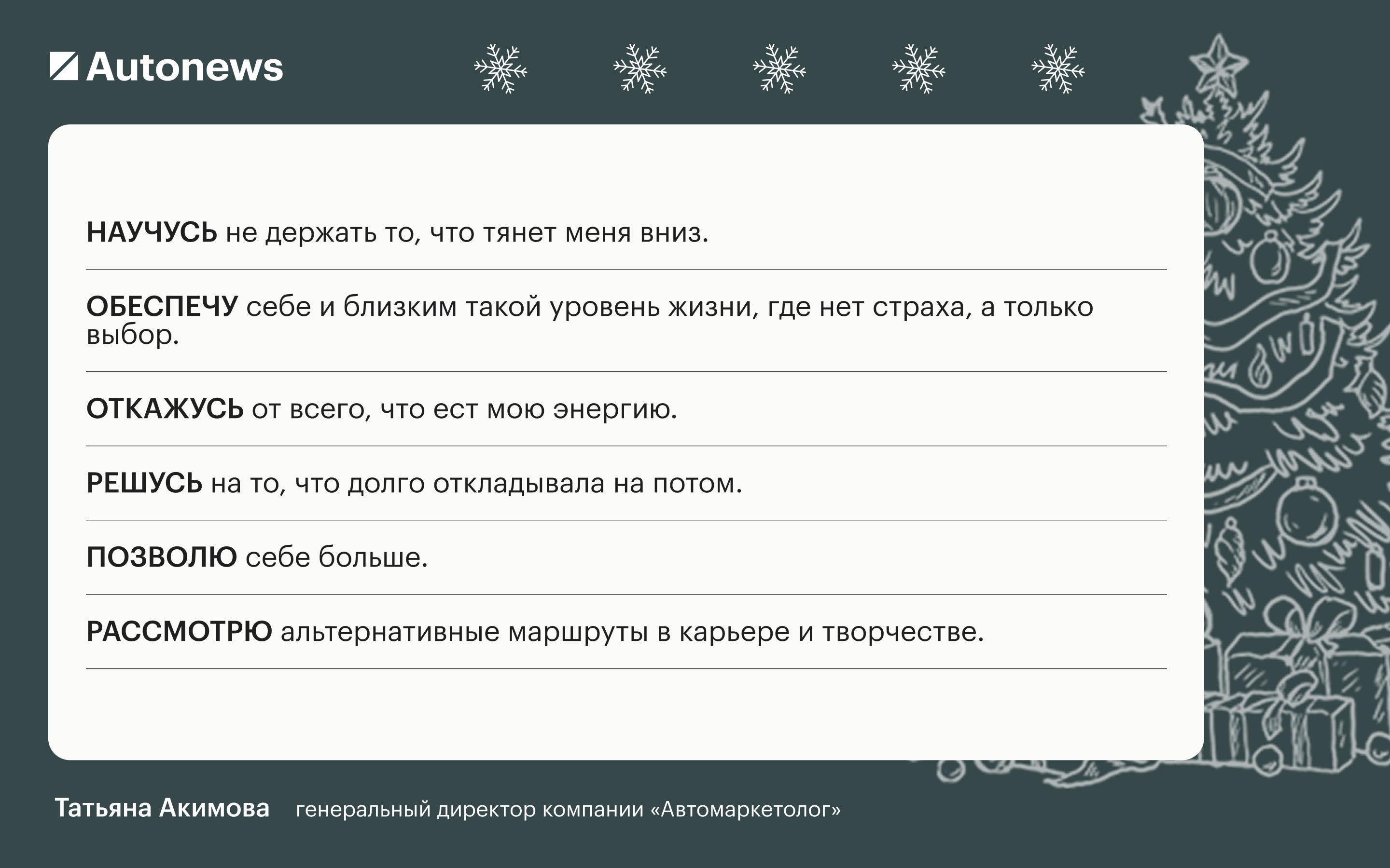 Для читателей РБК Autonews мы также даем возможность создать свой checklist — в следующем году мы обязательно вам напомним о данных обещаниях.
