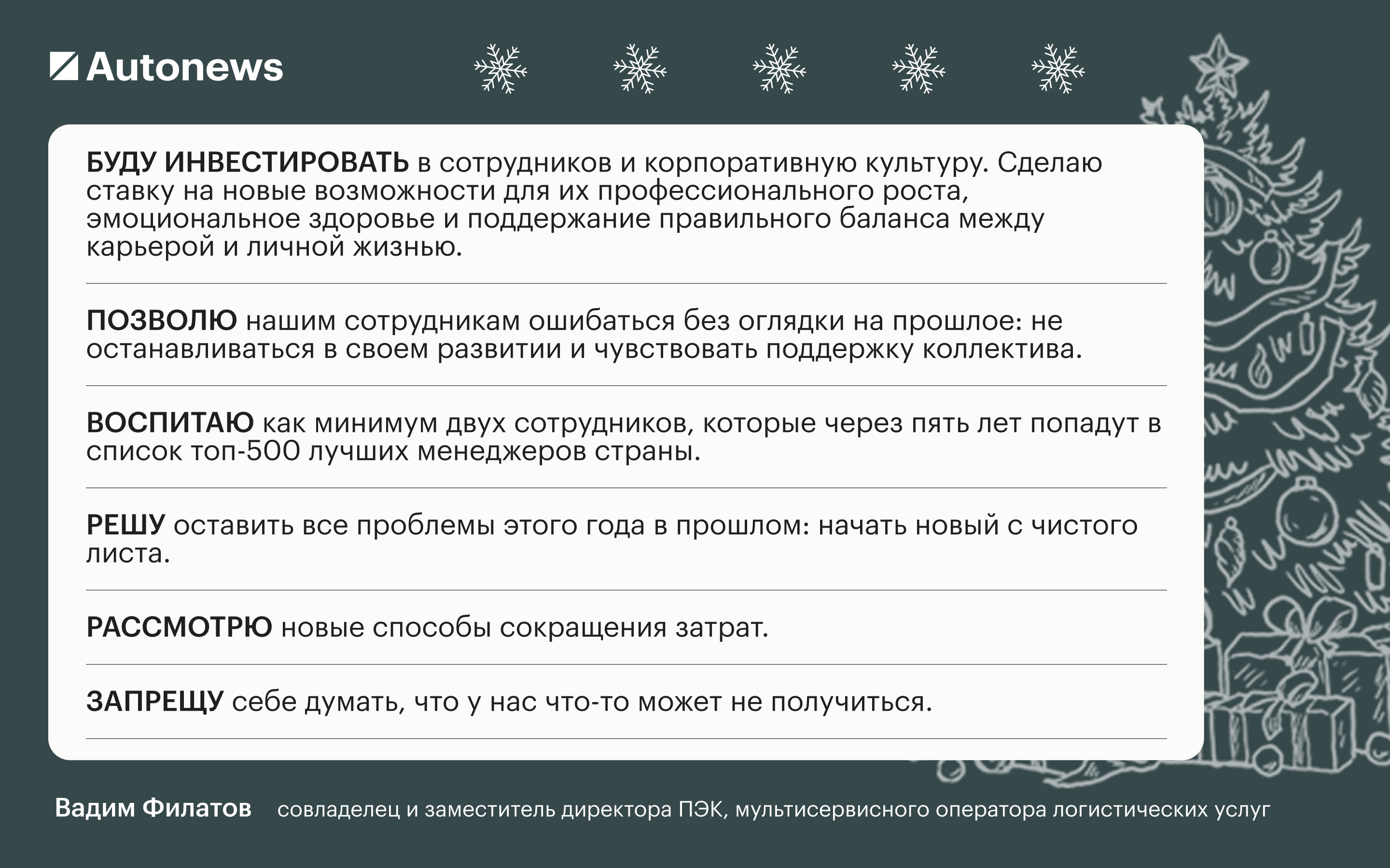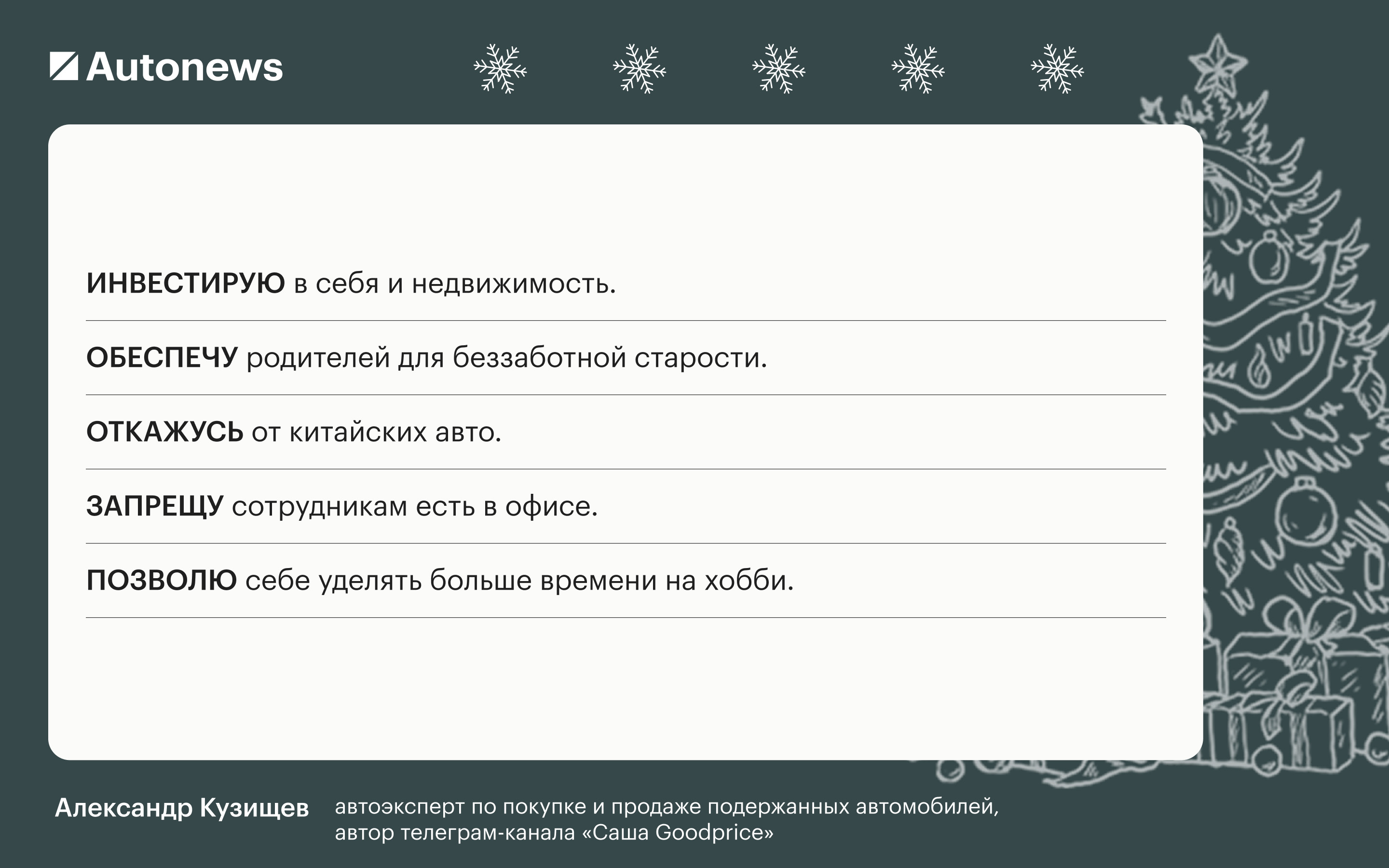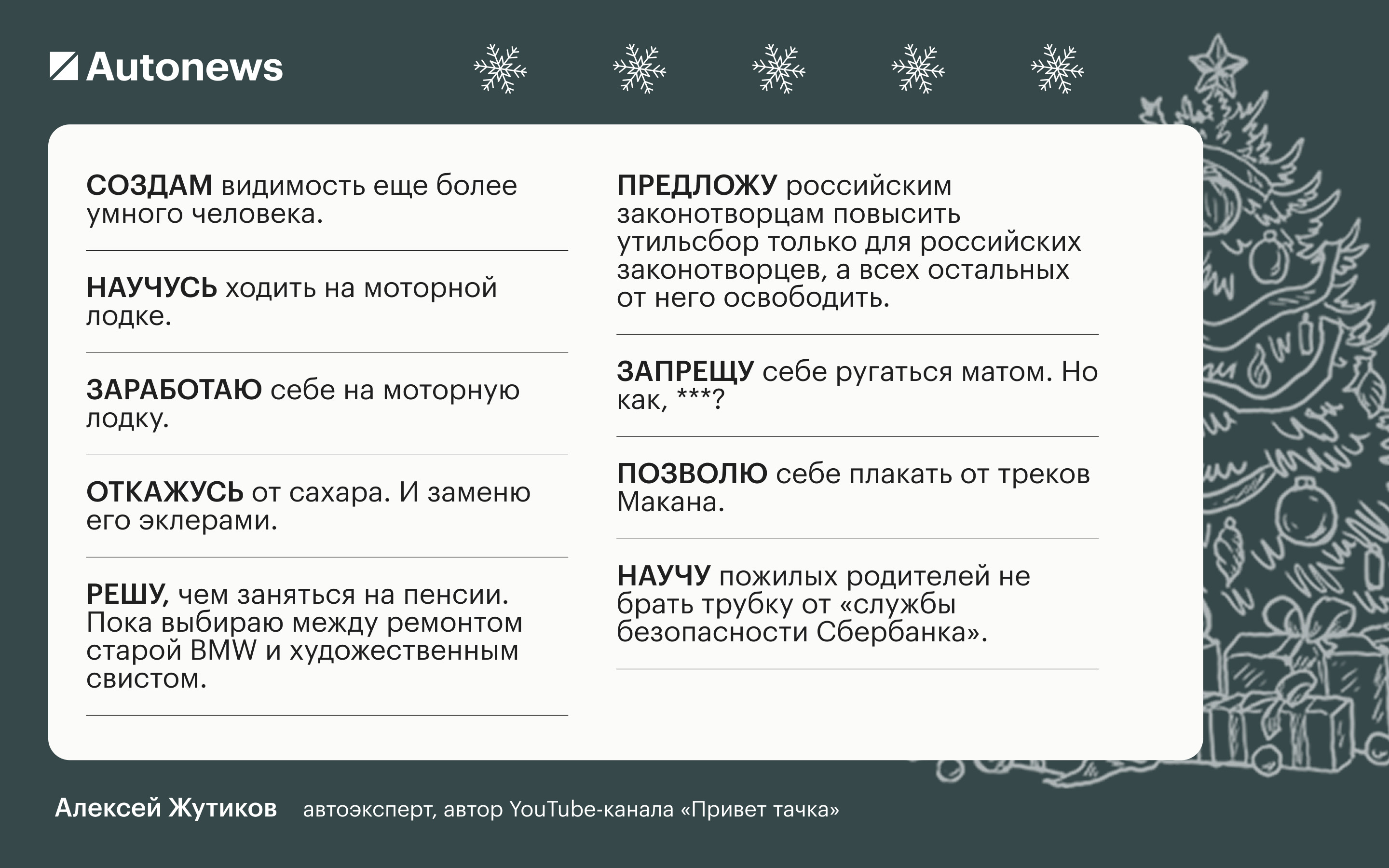 Для читателей РБК Autonews мы также даем возможность создать свой checklist — в следующем году мы обязательно вам напомним о данных обещаниях.