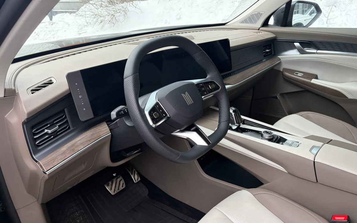 Младший кроссовер новой линейки «М» — «М70» — имеет точно такое же рулевое колесо, но его салон выглядит менее нарядно. Так, отделка в нем традиционная, черная, а дверные карты и торпедо имеют более простой дизайн. Шайбы управления полным приводом нет, поскольку привод безальтернативный передний. Перед центральным подлокотником размещена полочка для смартфона. На втором ряду есть откидной подлокотник и три подголовника. Приборный щит и мультимедиа идентичны тем, что используются в старшем «М90».
